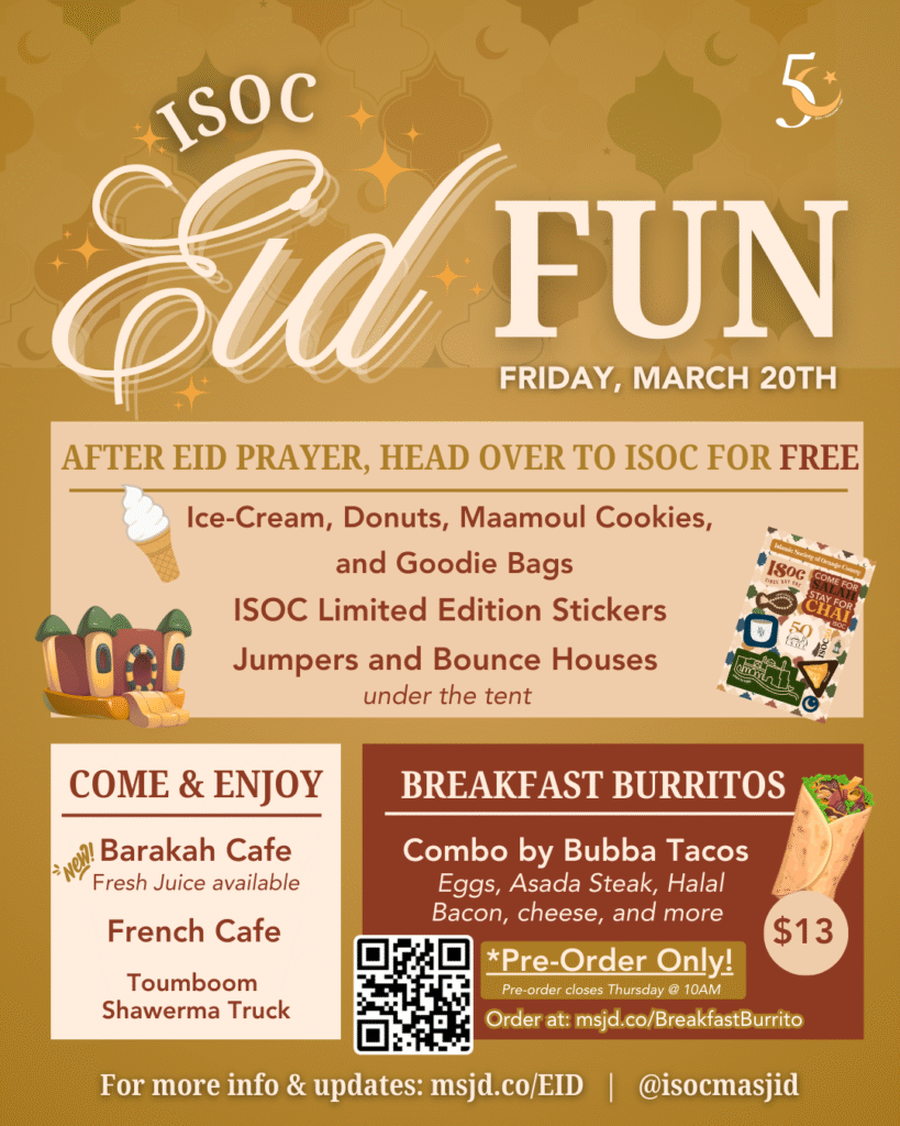 Eid Prayer 📅 When: Friday, March 20, 2026⏰ Time: 8:00AM – Takbeerat | 9:00AM Prayer📍 Where: Hill Elementary School Register Here Download here